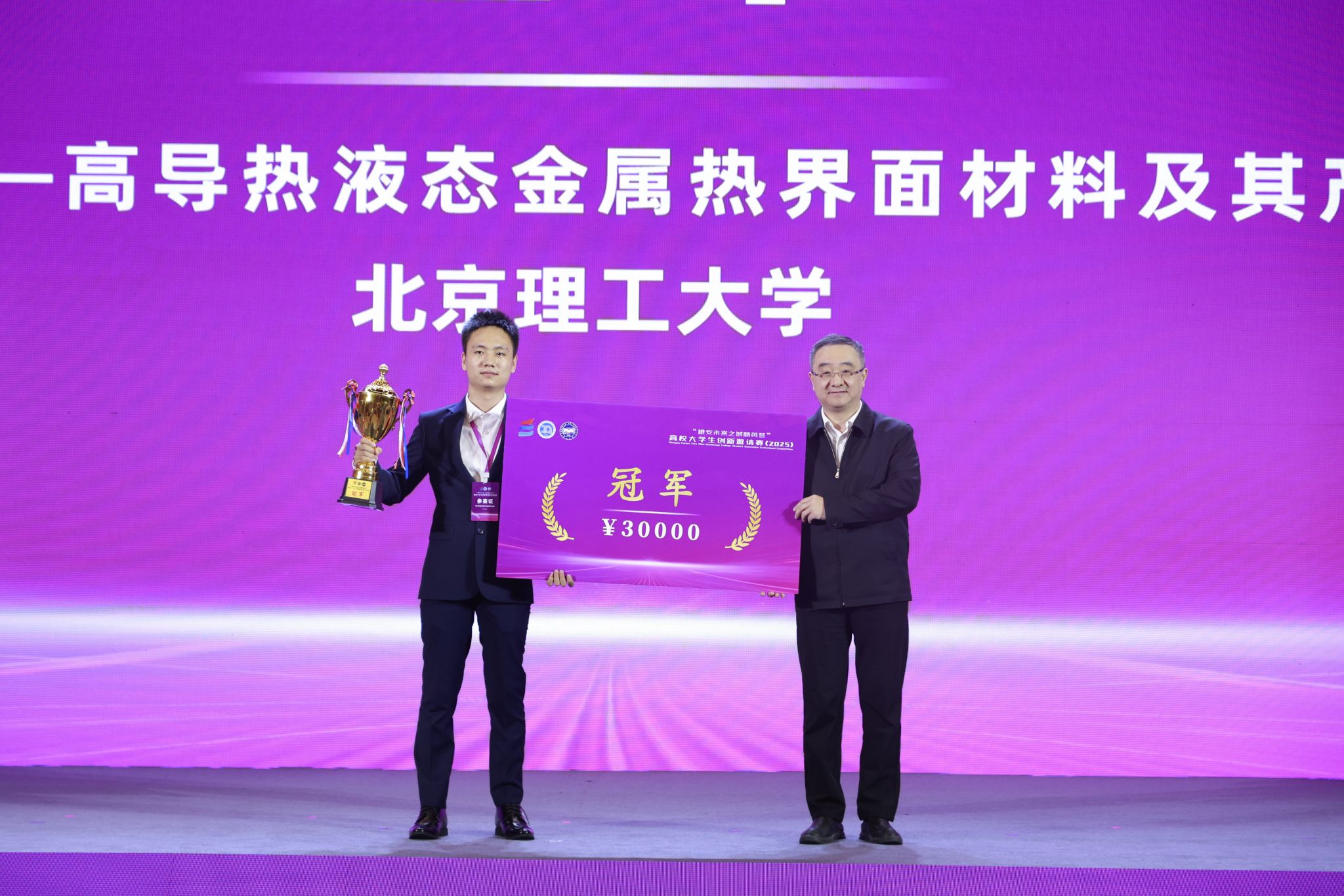 冠军争夺赛现场,各项目围绕个人成长、项目创新、产业价值和团队协作等展开巅峰对决。最终,来自北京理工大学的“液金科技—高导热液态金属热界面材料及其产业应用”项目夺得冠军。该项目创新液态金属改性技术,可以在广泛区间范围内调控液态金属的黏度、熔点、热导率等基础物理性质,实现了高热导率、零有机物挥发、长工作寿命和可定制等多种优势,可广泛应用于消费电子、汽车电子、新能源、商业航天等行业。