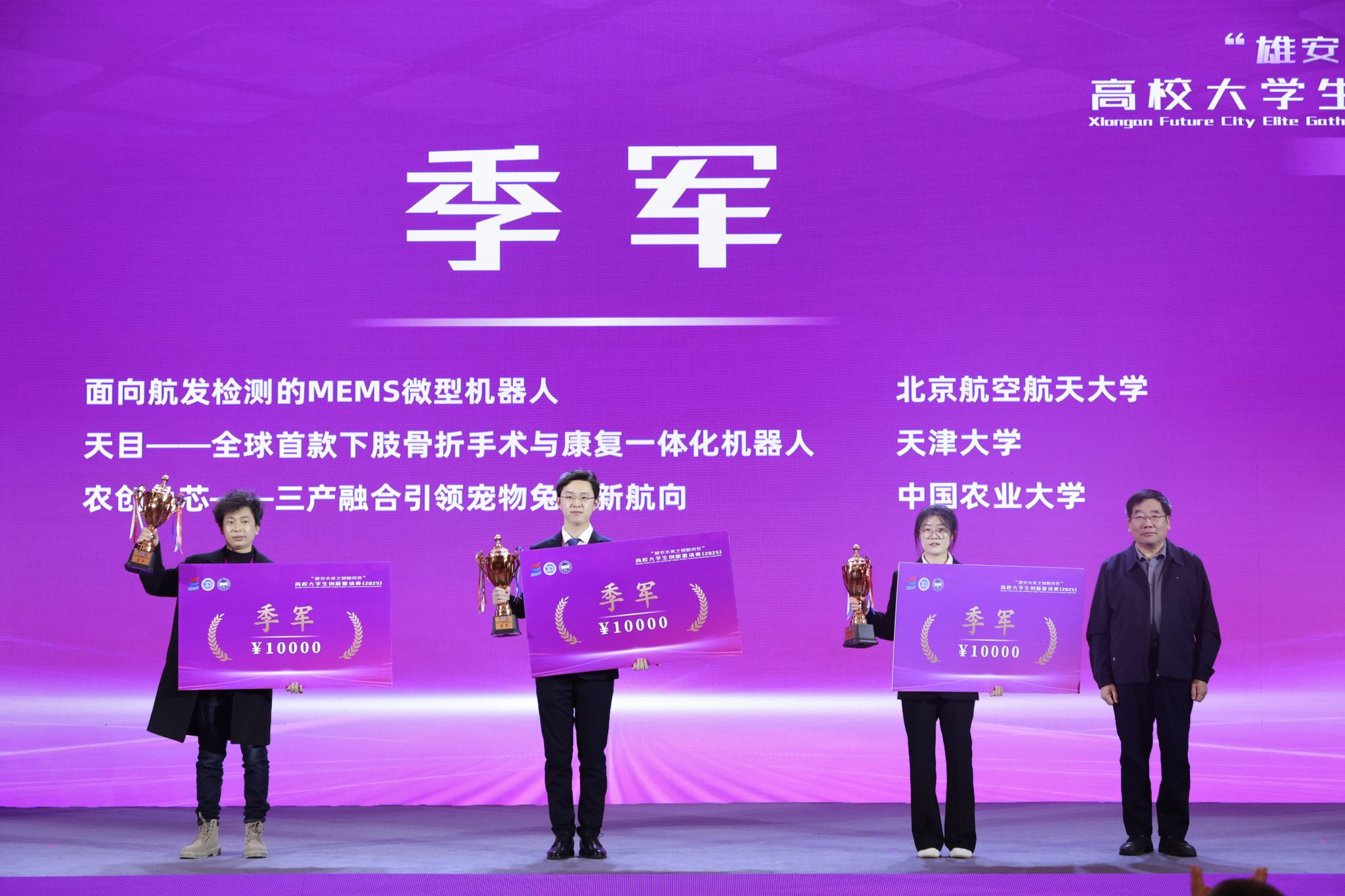 北京航空航天大学“面向航发检测的MEMS微型机器人”、中国农业大学“农创兔芯—三产融合引领宠物兔业新航向”、天津大学“天目—全球首款下肢骨折手术与康复一体化机器人”获得季军。