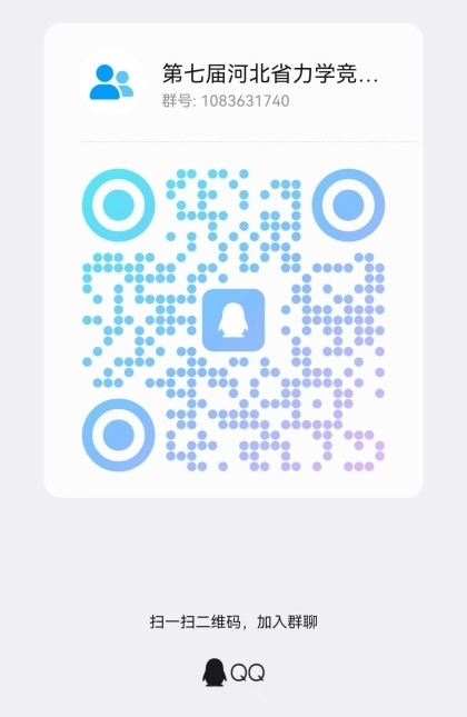 第一步:请参赛个人务必实名加入第七届河北省大学生力学竞赛交流QQ群,群号为1083631740,或扫描下方QQ群二维码进群。