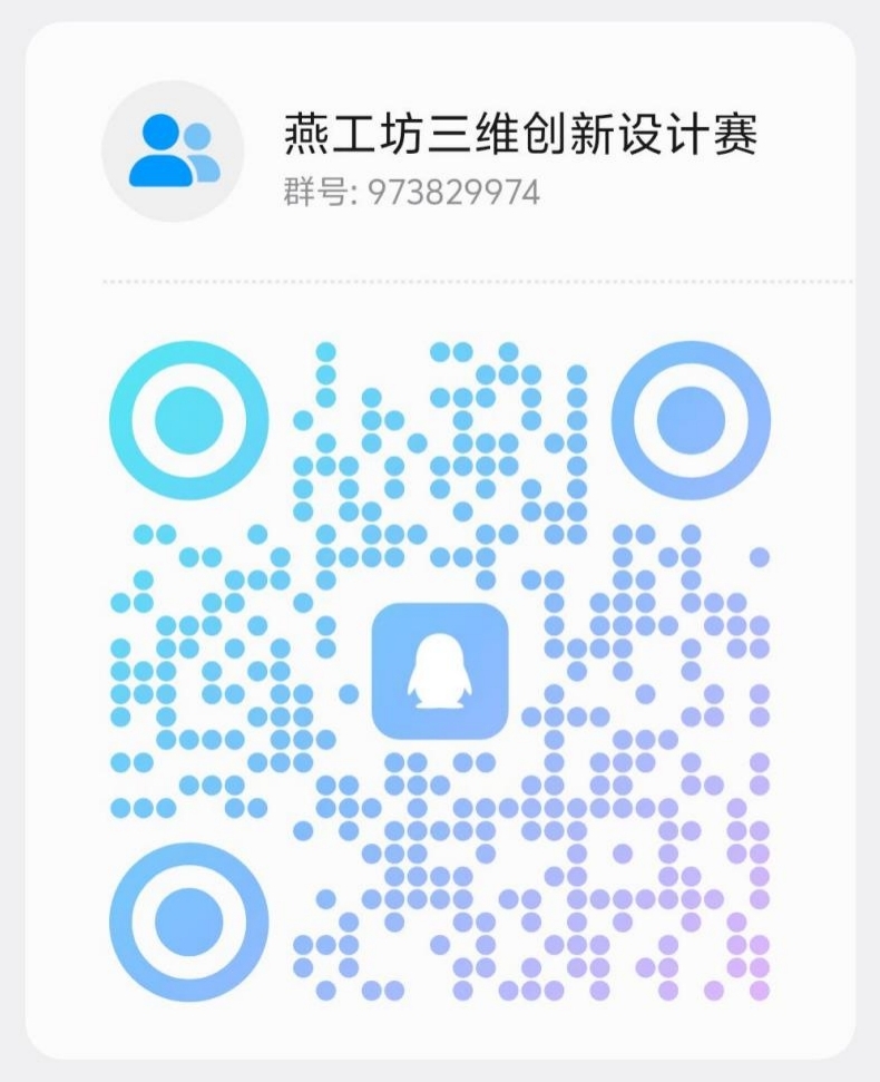 2.提交报名表后,务必尽快加入QQ群:973829974(燕工坊三维创新设计赛),后续竞赛通知和入围名单等具体事宜将在QQ群内通知,不再另行通知。