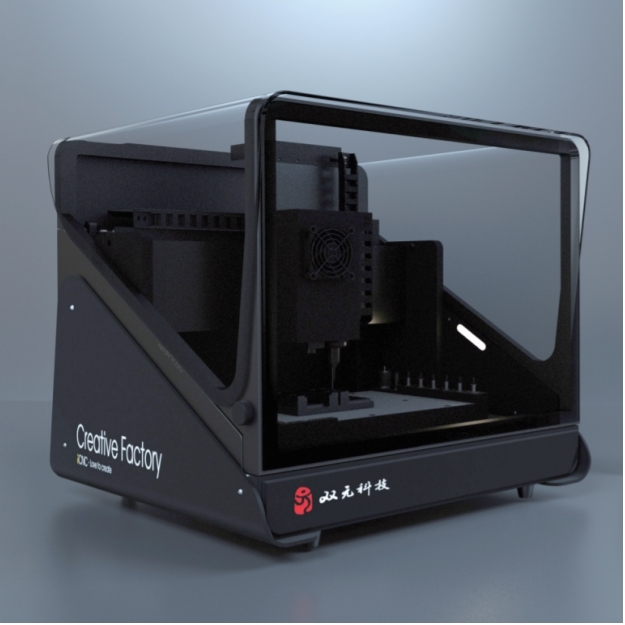 4.加工设备:3D打印机(可打印单个模型最大尺寸为256×256×256mm,最小尺寸不得小于10×10×10mm,打印耗材:白色PLA);桌面智能数控铣雕一体机。